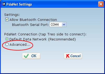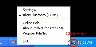 Step5: Launch PdaNet from Treo to initiate the connection. DO NOT launch it from the dialup entry on the PC side directly.