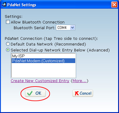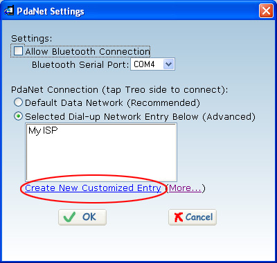 Step 3: Duplicate the existing settings that PdaNet uses by clicking on the link that says "Create Customized Entry" and select the entry created. Make sure you click "OK" to save the changes. ![]()